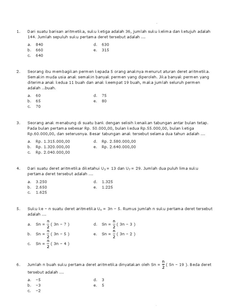 Soal dan pembahasan barisan dan deret.doc. 2.terdapat sebuah barisan aritmatika sebanyak tujuh suku. Tentukan nilai suku ke 7 deret tersebut! Contoh soal dan pembahasan tentang barisan dan deret aritmatika dan geometricontoh soal dan pembahasan matematika untu. Suku pertama = a = u1 = 2.